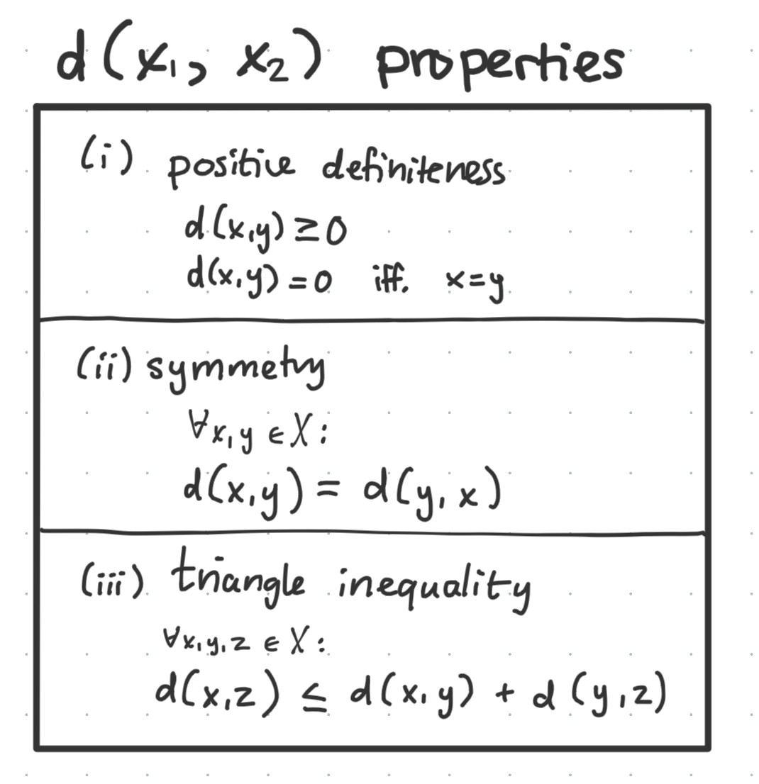 Where the distance metric is any function which satisfies these three properties:
