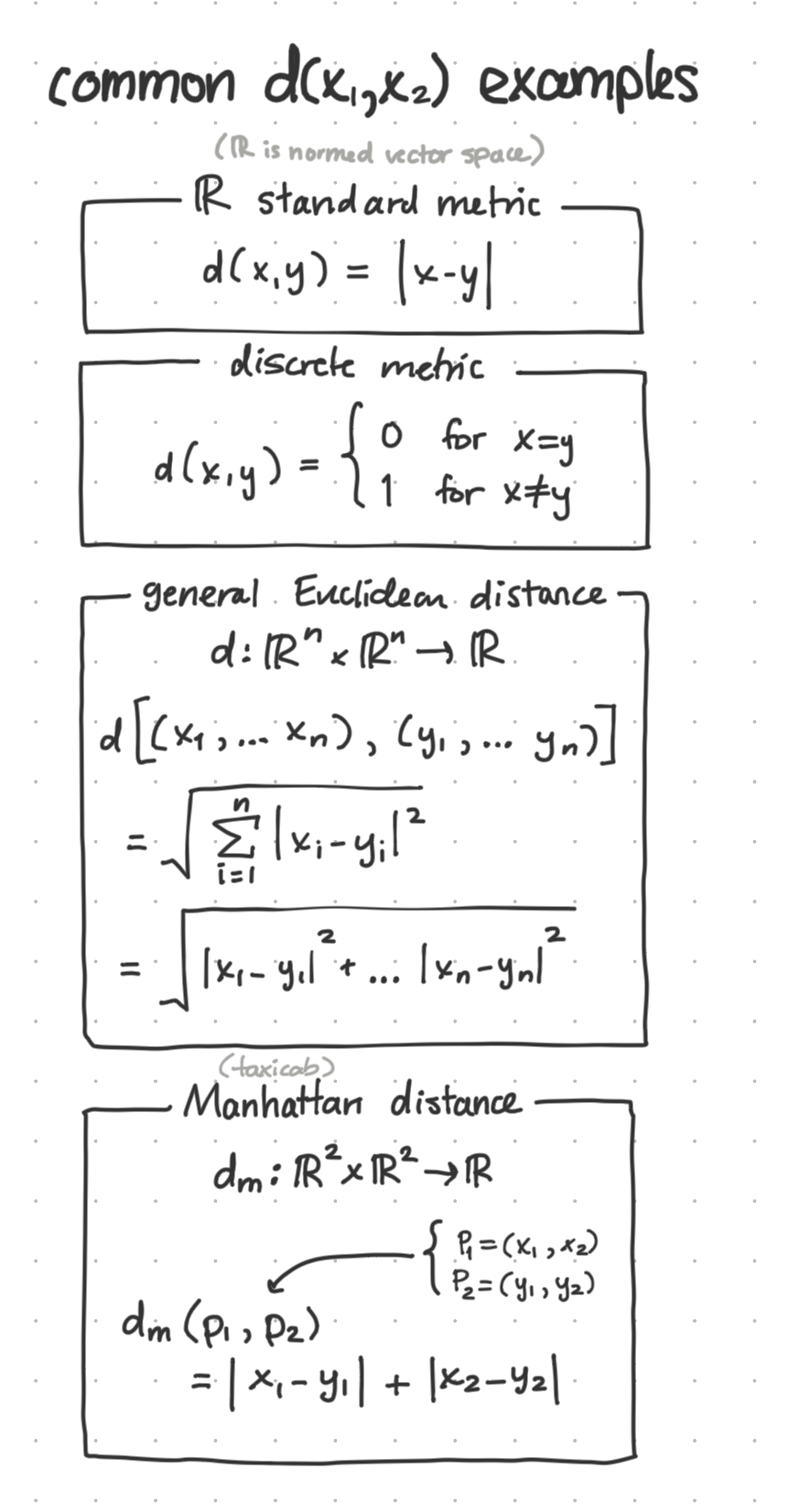 Reference: Examples of distance metrics