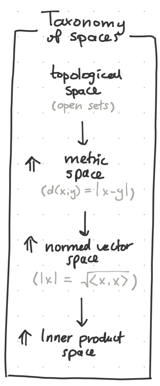 To recap, here is a quick taxonomy of the different types of spaces we learned about and how they relate to each other.