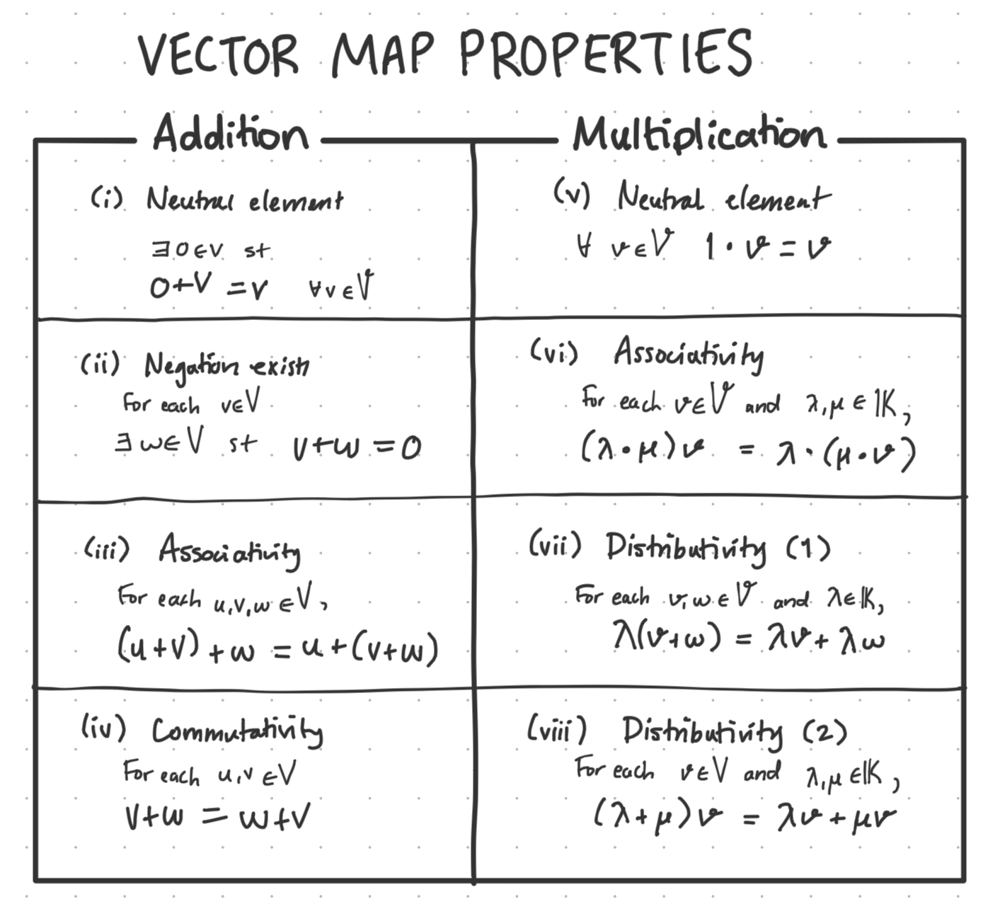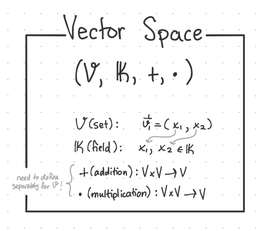 Where the maps (addition / multiplication) have their own set of properties - which are similar to the field axioms, but slightly different in that they act upon the vectors themselves, not the elements in the field.